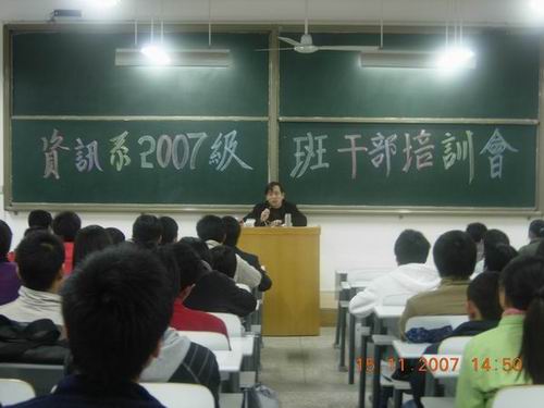 11月15日14:40资讯系2007级团总支在资讯楼106教室举办2007级员工干部培训会,特别邀请了资讯系党总支魏民书记和05级团总支副书记时峥同学参加大会。参加会议的有2007级各班员工干部和团总支员工干部。会议由2007级团总支书记袁保华老师主持。