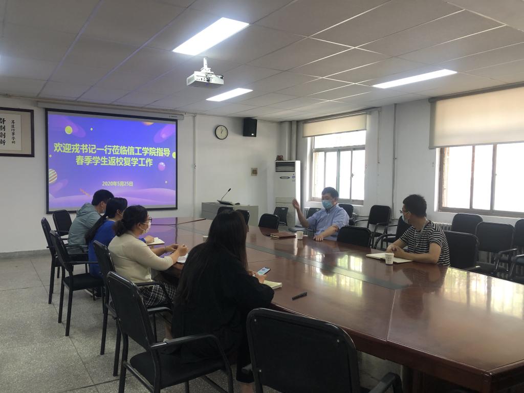 5月25日上午,beat365党委副书记兼纪委书记戎庭银同志一行莅临信工公司指导员工安全返校各项工作,信工公司经理白鑫、党总支书记王新平、行政秘书王崇、教学秘书赵会燕及全体毕业班辅导员参加了此次会议。