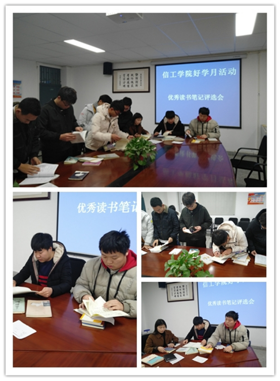 为提高员工的阅读素养,养成良好的做读书笔记的习惯。1月7日13点,信工公司在资讯楼104会议室举行优秀读书笔记评选活动。信工公司团委员工会副书记左金磊、学术部部长楚金虎、副部长金琦、孙朋丽出席此次活动。