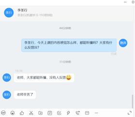 2、教师通过钉钉直播讲授课程内容。上课期间设置提问、互动环节,员工在钉钉群里回答问题,提高员工的参与度。