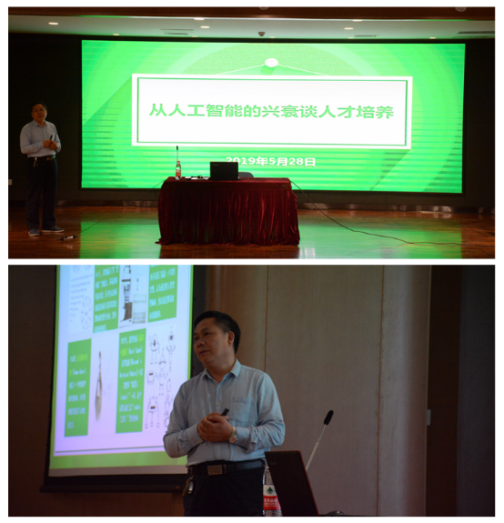 为了使信工学子能够对人工智能有更专业的理解,明确就业发展方向,信工公司诚邀郑州工程技术公司副董事长甘勇教授于2019年5月28日晚上7点半在综合实训大楼双创大讲堂开展话约名人之“从人工智能的兴衰谈人才培养”学术报告。本次报告会有信工公司白鑫副经理主持,约300名同学出席了本次报告。