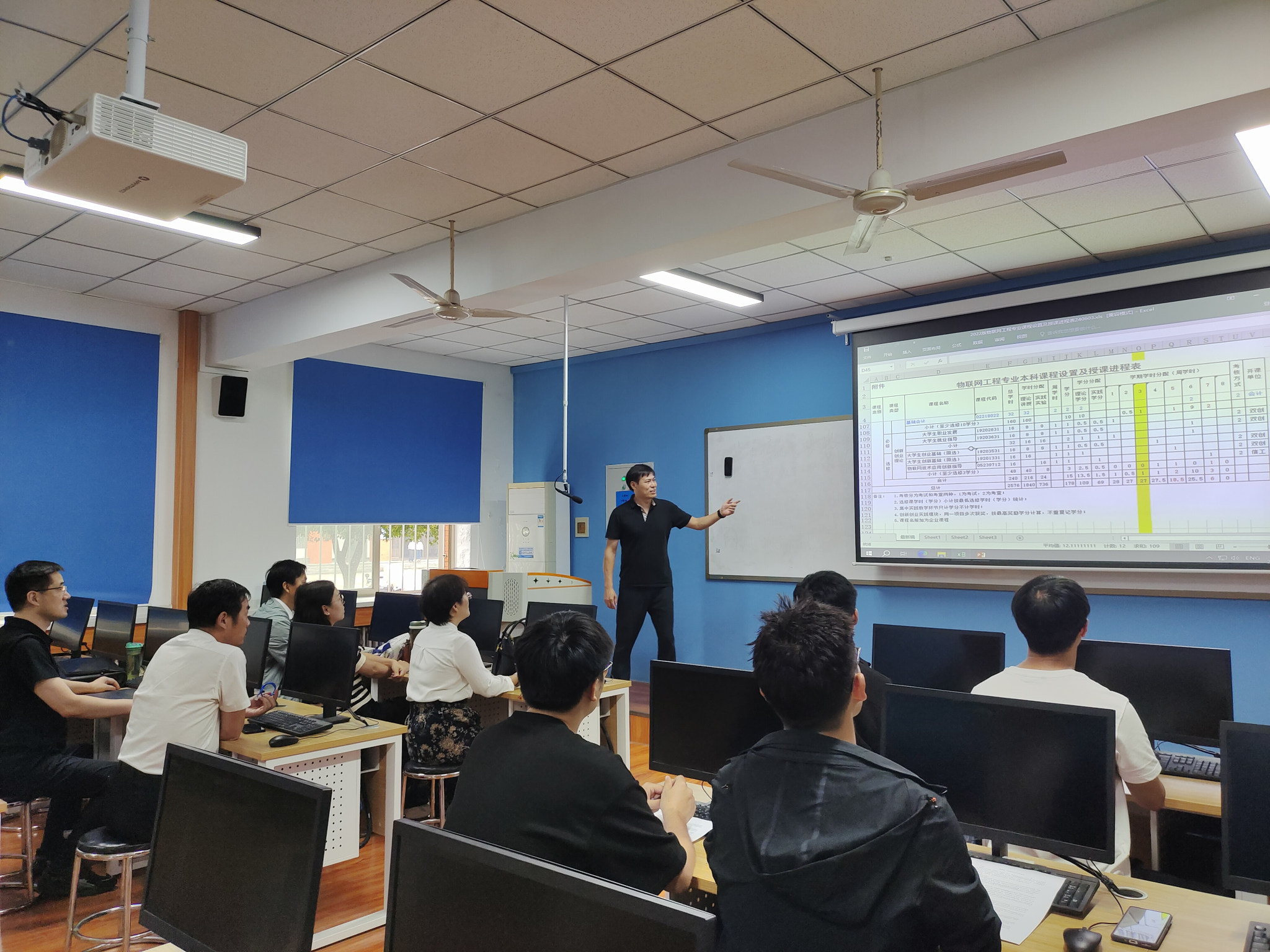 为了进一步提高教学质量,9月19日下午,信工公司物联网教研室全员10名教师在资讯楼115进行了磨课活动,活动由教研室主任乔木老师主持。