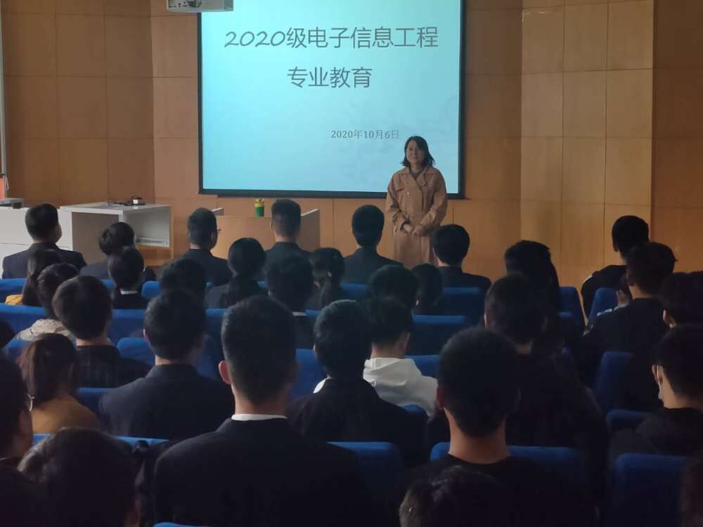 2020年10月6日下午,为配合20级新生入学教育工作,电子信息工程专业开展了专业教育讲座。讲座的报告人为电子信息工程专业负责人王丽娟老师。