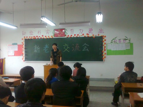 正值秋日,韵意浓浓。10月27日下午,由资讯系团委组织部组织策划的新老生交流会在综合楼大一新生班各班主教室如期举行。大一的同学们准时来到了教室,和在百忙之中抽出时间参加活动的大四的学长学姐们一起交流。