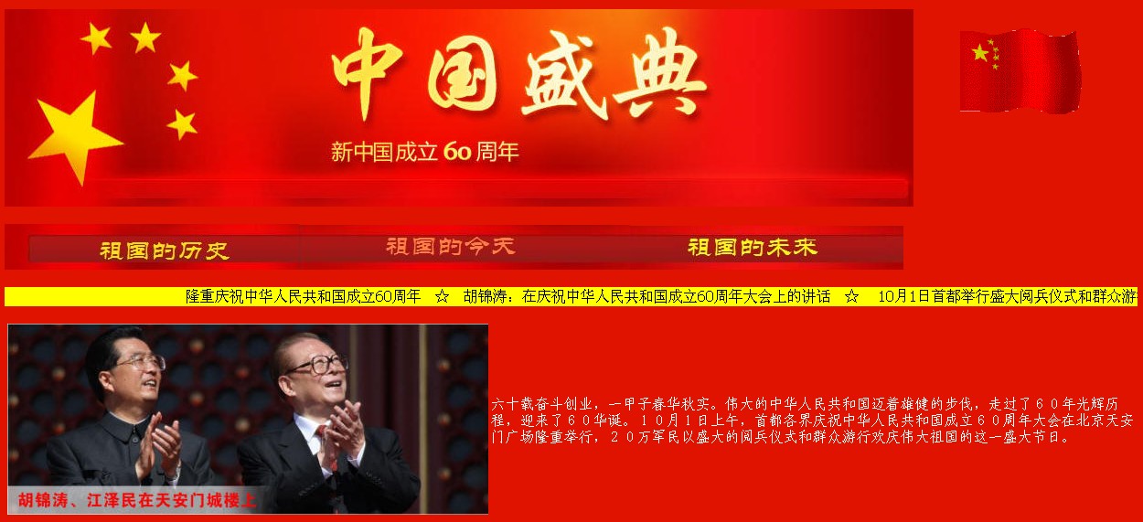 使用框架,配上文字信息和FLASH送上一份对祖国诚挚的祝福。