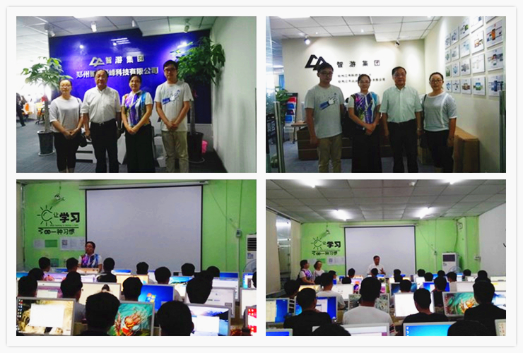 7月10日上午,信工系主任李学桥教授、党总支书记王新平、副主任白鑫、教学秘书李磊一行到信工系实习实训基地——郑州智游爱峰科技有限公司考察并慰问正在该单位实习的公司信工系2014级员工和指导老师。