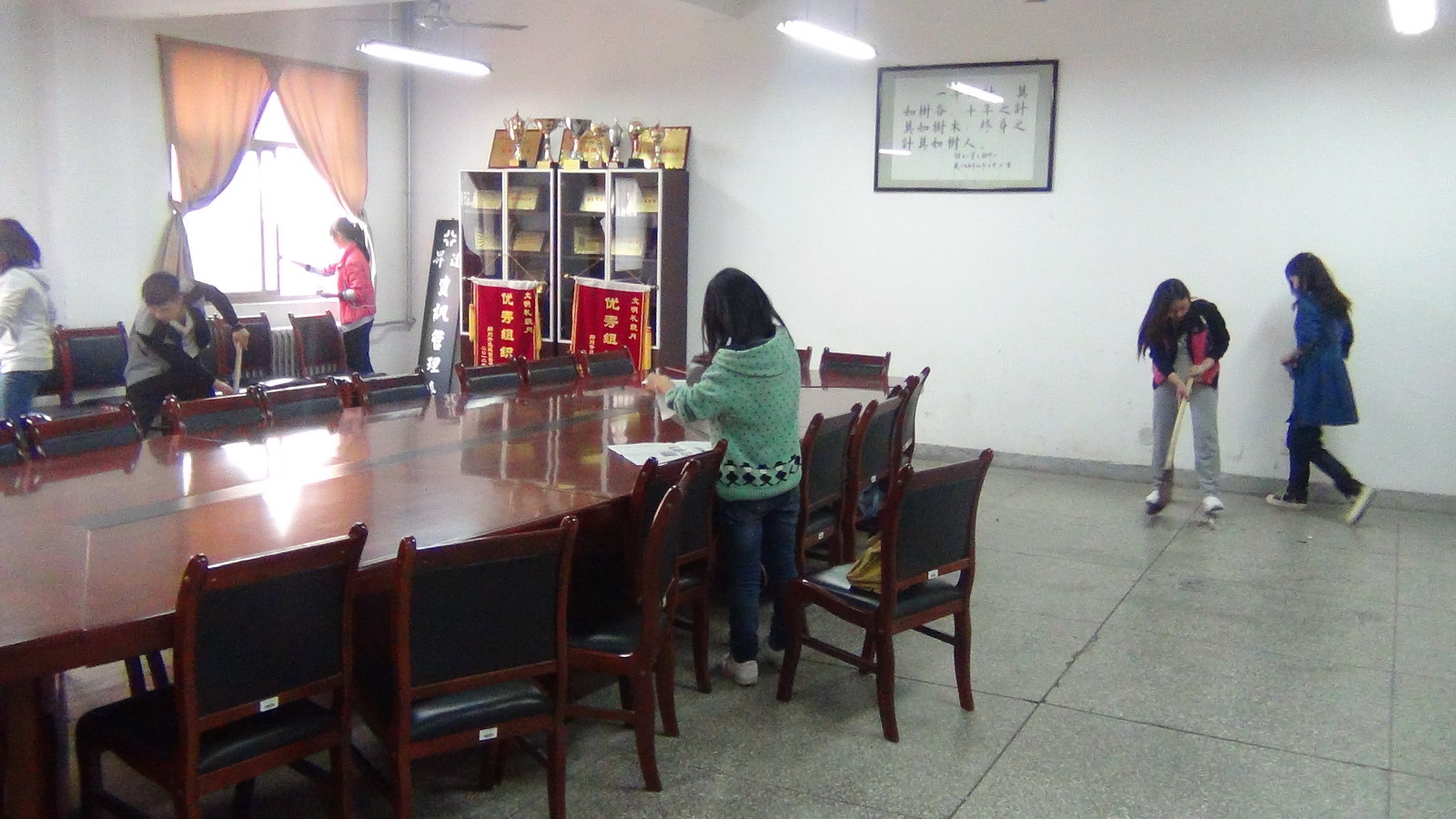 参加人员分为四个小组,第一小组在组长的带领下对信工系实验室进行了打扫。第二小组对现教中心的部分教室进行了整理。第三小组、第四小组对信工系所有办公室、资讯楼的走廊、楼梯进行了清理和打扫。受到了系教职员工的普遍称赞。