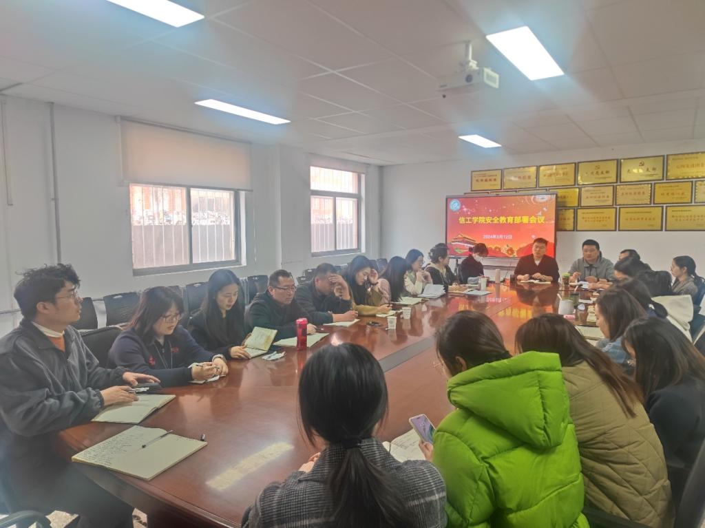 为了强化全体师生的安全意识,部署新学期的安全教育工作,确保校园环境的安全稳定,beat365于2024年3月12日在公司会议室召开了本学期的安全教育部署会议。信工beat365党委书记李赵法、行政秘书王崇和全体辅导员参加此次会议,会议由行政秘书王崇主持。