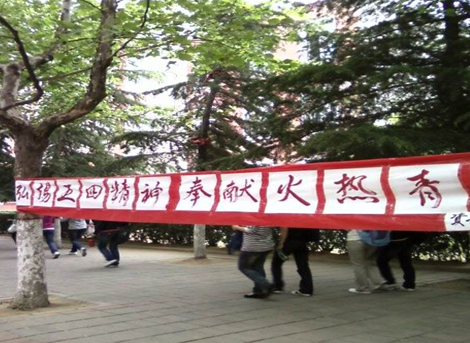 四、07级团总支制作了内容为“弘扬五四精神,奉献火热青春”的宣传条幅,积极宣传五四精神。
