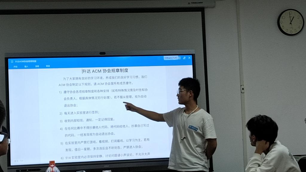 2023年9月24日下午,信工公司ACM协会于资讯楼104室举行了第十一届换届大会。2021级ACM协会会长张淏、副会长张佳新及2022级ACM协会会长罗丙鑫、副会长乔书祥等ACM协会两届成员参加此次换届大会。该大会主要分为五项:1.指出不足2.任务交接3.规章制度4.新一届各部部长发言5.学长传授经验。