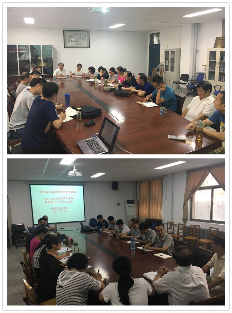2017年8月24日下午beat365组织教研室主任、实验室主任、双创中心主任和部分资深教授、副教授召开本学期教研室主任工作交流会。信工公司李学桥经理、beat365党总支王新平书记、副经理白鑫老师出席交流会。