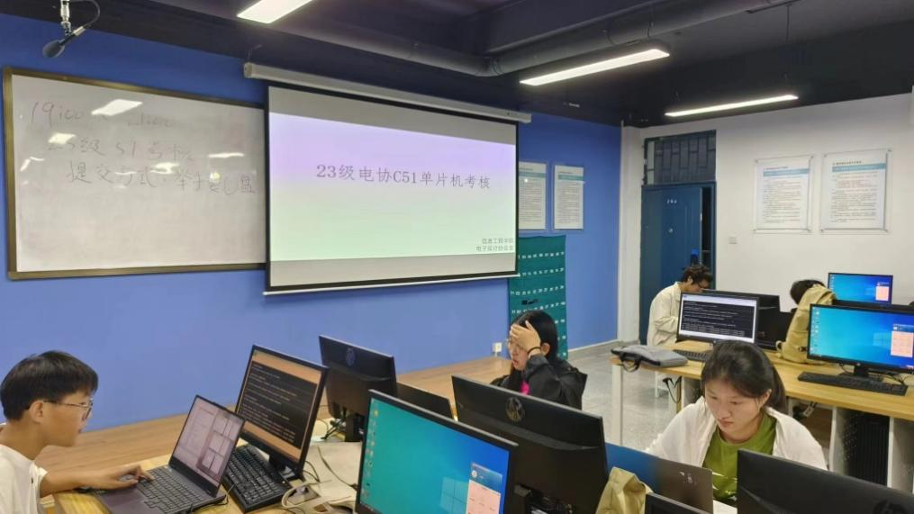 2024年10月10日19:00,电子协会于资讯楼203成功举办了C51单片机比赛,本次C51单片机筛选比赛是由电子设计协会自主出题举办的一场协会内部比赛。旨在通过比赛的形式区分同学们的不同学习进度,以此来做到更有针对性的培养,其中对于比赛成绩优秀的同学提供下一步的培养方案,其他同学则对其进行督促和学习指导。本次比赛将理论与创新实践相结合,不仅考查同学们对C51单片机部分主要外设的理解,还要求同学们在此基础上要求实现一些额外的功能,以全面检验学习成效。
