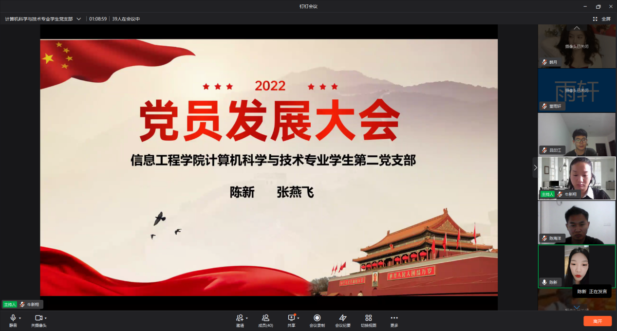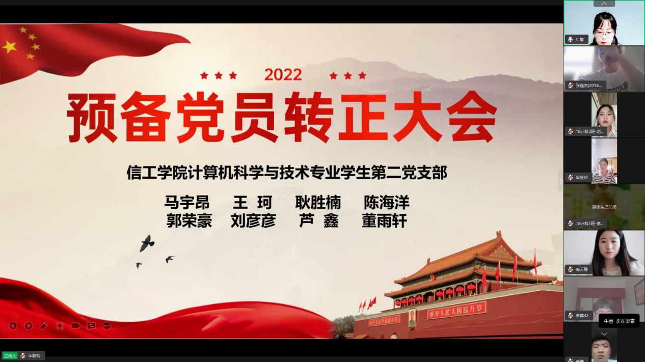 2022年6月3号,公司计算机科学与技术专业员工第二党支部召开支部预备党员转正暨发展大会。大会由公司计算机科学与技术专业员工第二党支部书记牛堃老师主持,参会人员有员工党支部全体员工正式党员、预备党员及发展对象。