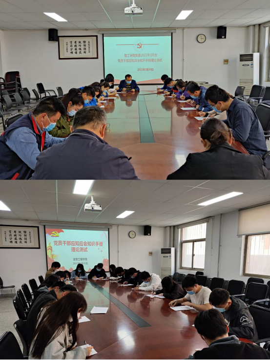 为深入学习贯彻习近平新时代中国特色社会主义思想和党的十九届六中全会精神,掌握师生党员理论学习实效,3月30日和31日,信工公司分别组织师生党员代表参加公司的党员干部应知应会知识测试。