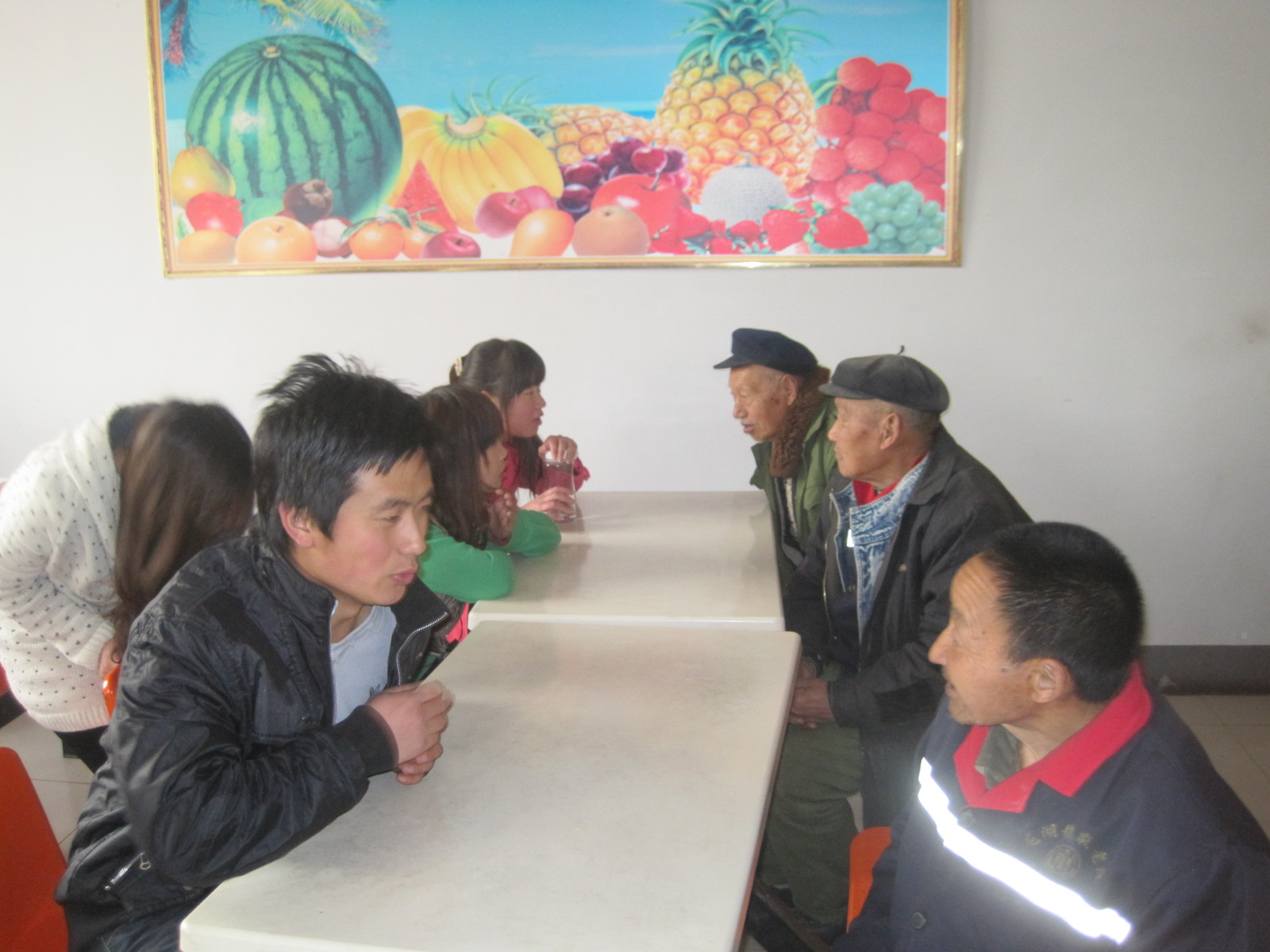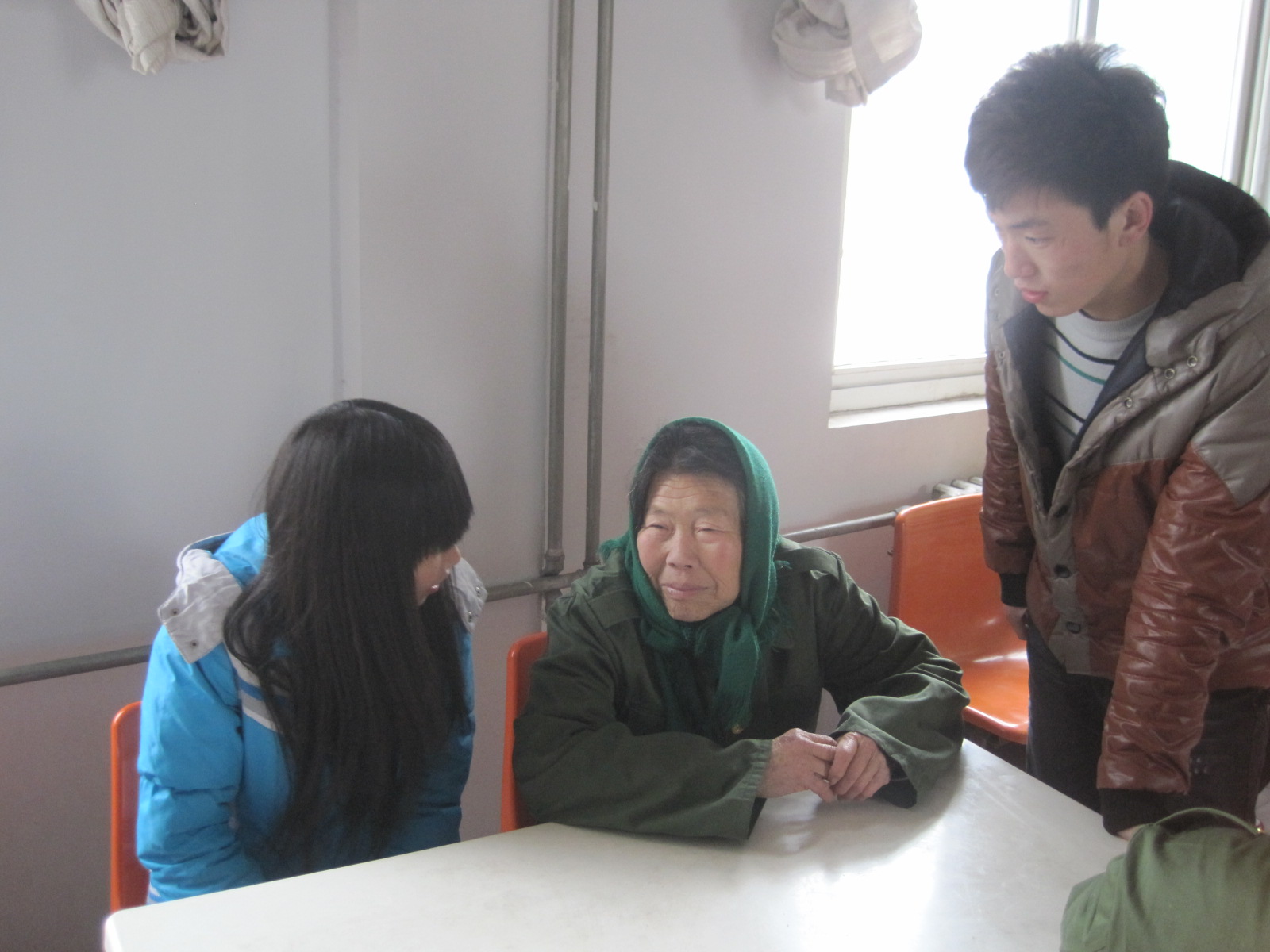 志愿者来到敬老院时,经理热情地接待了我们。接下来,同学们就投入到了对老人的交流慰问中。首先大家把老人从居室搀扶到了餐厅,小心翼翼,体贴备至,老人们甚是感动,不停地道谢。在交流过程中,有的同学和老人们聊天,听他们讲述年轻时的故事和现在的生活状况,以便了解老人生活中的不便和老人们的希望;有的同学还在现场讲笑话,逗得老爷爷老奶奶们很是开心;在慰问期间,有些同学们还和老人玩上了扑克牌;随后,一位老人还给大家表演了吹口琴,赢得大家阵阵掌声,同学们也都跟着那优美的旋律唱了起来,整个餐厅洋溢着温暖。最后经理发表讲话,他非常感谢大家的到来,还鼓励同学们努力学习,把自己塑造成为祖国的栋梁之才。一个多小时的时间后,同学们恋恋不舍地与老人告别,离开了养老院。
