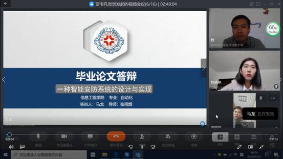 经过精心准备、严密组织,整个答辩过程进展顺利,2020届毕业生充分展示了自己的毕业成果,答辩组的老师们严肃、认真对待每一份毕业设计,圆满完成了此次毕业网络答辩工作。