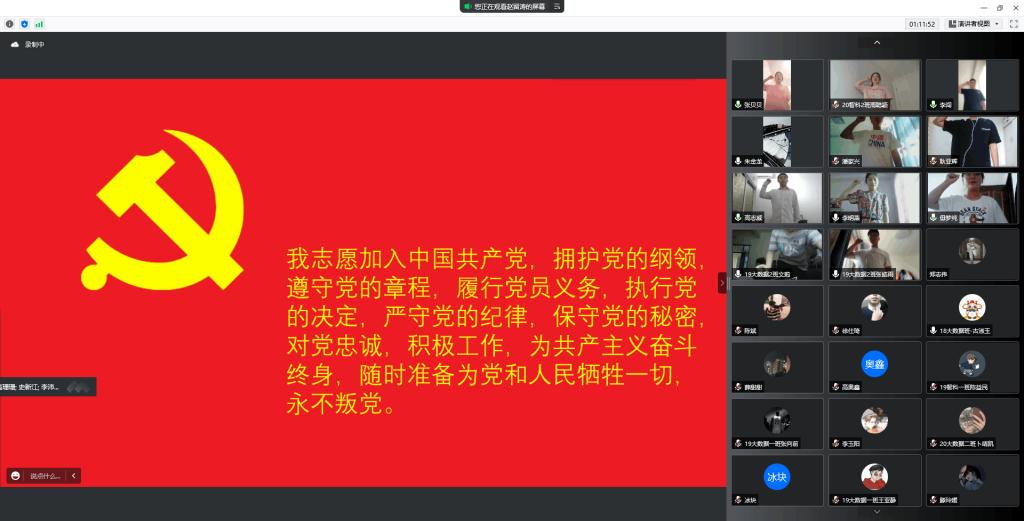 随后,教工党员朱辉星同志带领全体与会人员进行入党宣誓,本次大会在全体与会人员铿锵有力的誓词声中落下了帷幕。随着本次党员发展大会的顺利召开,为beat365大数据专业、智科专业联合党支部注入了新的活力,进一步扩大了党员队伍,永葆中国共产党“为中国人民谋幸福,为中华民族谋复兴”的初心和使命,发挥党员的先锋模范作用。