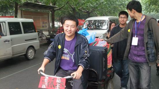 当手续办完后,我系的爱心接待车将新生的行李物品安全地送到每一位新生的宿舍。在这一路上,我们的工作人员和他们热情交流,为他们解答疑问。我系团委员工会干部们积极认真的工作态度和热情的服务得到了新生及家长们“办事效率高,服务态度好”的好评。