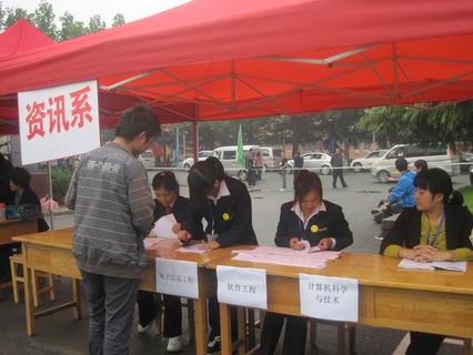 9月15日,持续了多日的连绵秋雨终于停了下来,天空露出了笑脸,阵阵桂香在校园中弥漫。在这特殊的一天里,全院迎来了2011级新生报到的高潮。为此,资讯系团委员工会全体成员着装整齐,分工明确,在我系行政秘书陈刚老师的带领下,早上7:00就在行政楼前、思源会馆西门、体育馆等地设好接待点,随时准备为新生提供细致热情的服务。