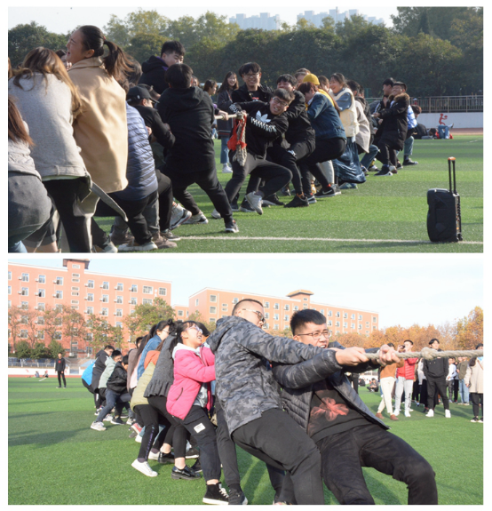 参赛队伍以部门为组别,信工、外语两个公司结合共组成12支队伍,采用12进6,6进3的比赛规则。比赛过程中,各部门参赛队员努力拼搏,参赛成员紧握长绳,响亮整齐的口号带动身体卯足了劲拼命往后拉!未参赛的成员自发组成啦啦队为比赛队员呐喊加油,呐喊声此起彼伏,现场激烈的比赛将整个活动推到了高潮。赛场上的队员个个斗志昂扬,用他们的行动为我们诠释了团结的含义,在比赛分出胜负后,信工、外语主席团成员组成队伍,分别从外语团学和信工团学挑出10名外援进行较量。最后,信工公司团学和外语公司团学的合影将整个活动划上完美的句号。