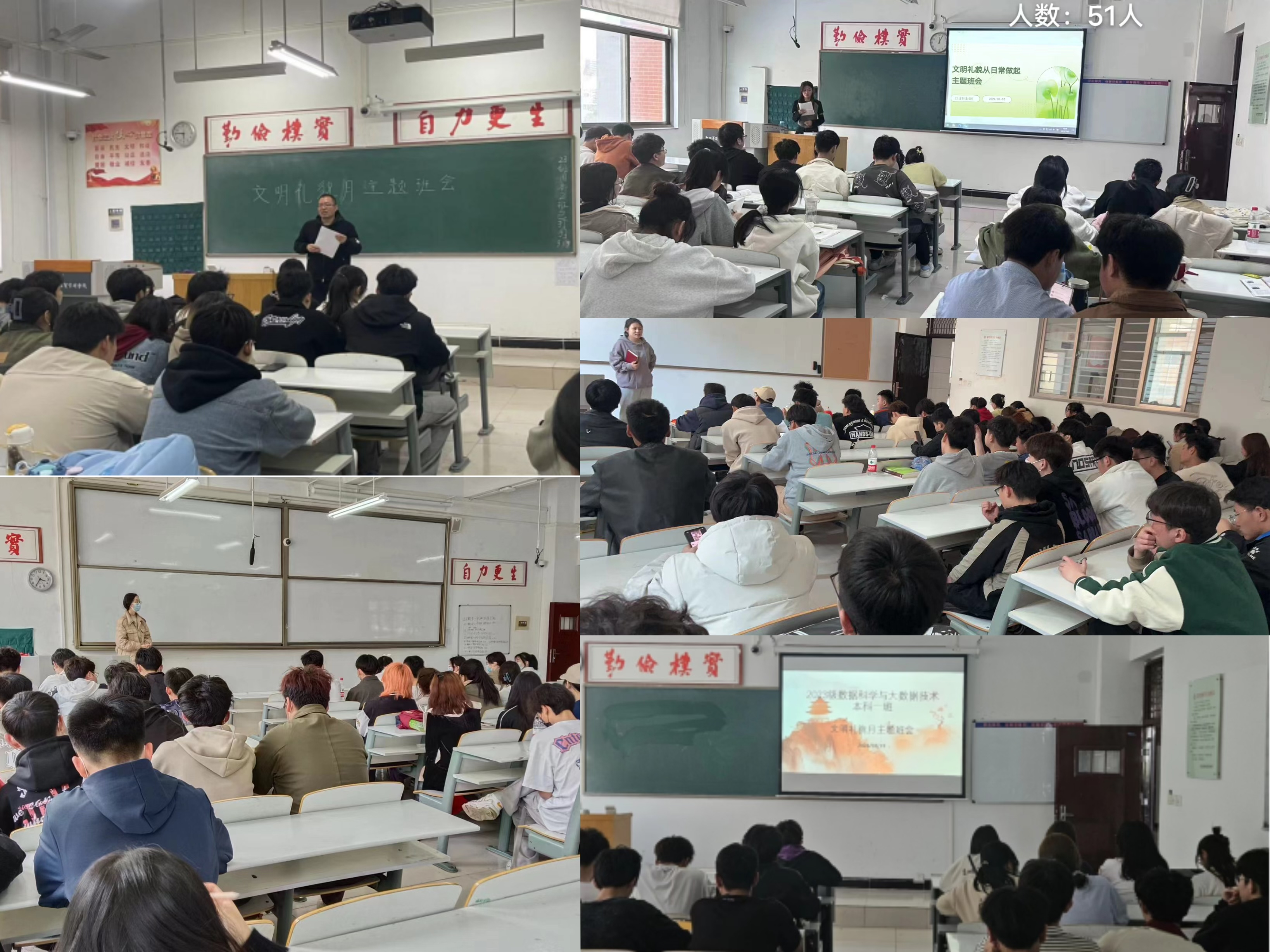 以每日八千步计划为抓手,各年级各班级积极开展“文明礼貌月”主题班会。会上,主持人从校园文明、课堂纪律、宿舍文明、个人健康等多方面向同学们提出要求,并以播放文明礼仪教育相关视频和PPT的方式让同学们清楚地认识到:良好的道德品质、行为习惯和健康向上的生活情趣有助于同学们的全面发展。也让员工深刻领会到健康的体魄是学习的基础,良好的学习习惯是学风建设的关键,主题班会的开展也增强了同学们的健康意识、纪律意识和责任意识。