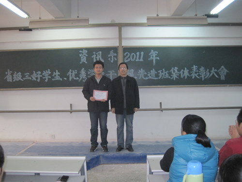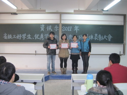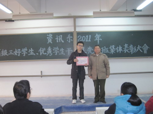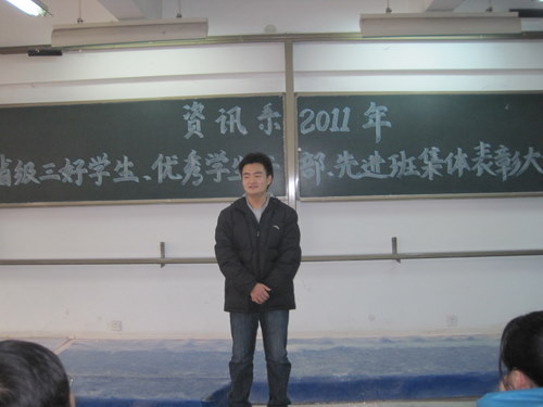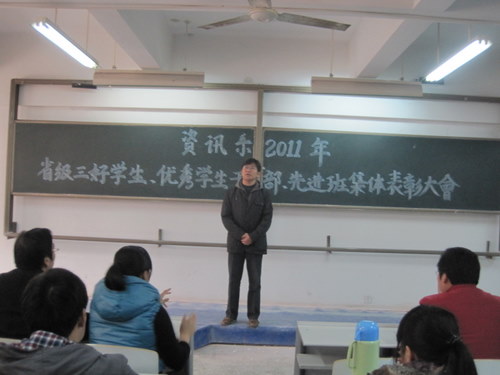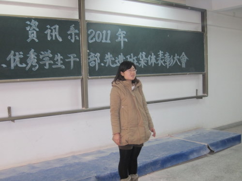 在评选表彰2011年河南省普通高等公司“三好员工”、“优秀员工干部”、“先进班集体”的活动中,我系08电信一班李文彬、08信管班杨莎和09电信二班李雯洁同学被评为“河南省三好员工”,08信管班张向栋同学被评为“河南省优秀员工干部”,09级电信一班被评为“河南省先进班集体”,为了表彰先进,树立典型,12月7日下午1点30分,资讯系在资讯楼112教室隆重举行了表彰大会。参加本次大会的有资讯系主任冷建华教授,党总支魏民书记,党总支副书记王新平老师,行政秘书兼团委书记陈刚老师以及资讯系全体辅导员老师和全系各班员工代表,大会由陈刚老师主持。