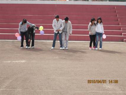 虽然天气有点热,但全体社团成员都准时到达体育场。在我系社团联合部人员的组织下,第一个活动---“同心协力”很快就开始了。藉由初步的肢体接触,打破人际关系的距离,通过游戏让成员们在短时间内增进熟识度、融入活动。第二个活动---“心有灵犀”,进一步增加了参赛者之间的配合度,同学们玩得不亦乐乎,欢声笑语接连不断。最后一个活动---接力赛更是将气氛推到高潮,每位同学都参与其中,共同体验活动的乐趣。