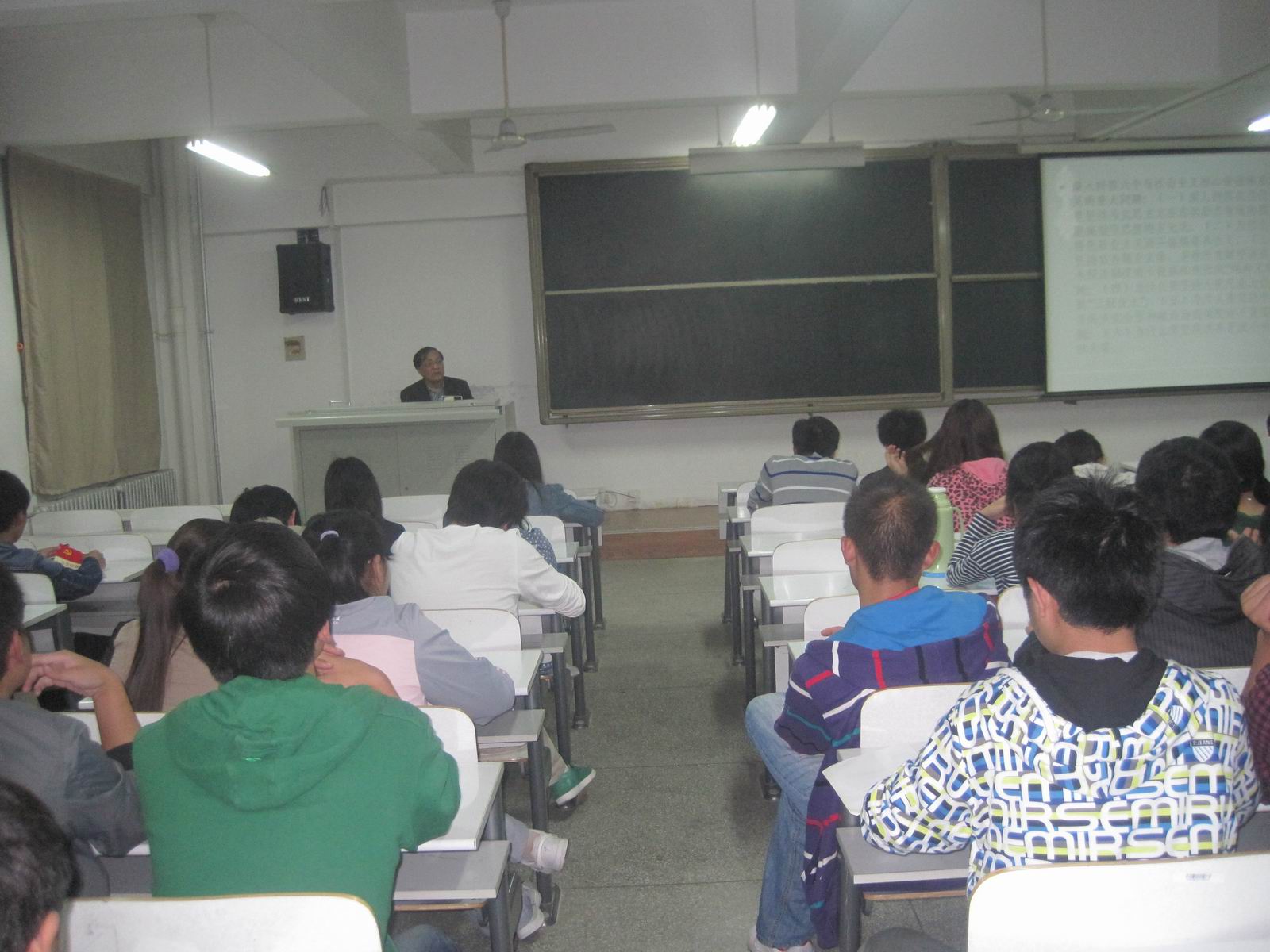 10月11日晚上七点半,在资讯楼210教室,资讯系第十四期业余党校顺利开班,特邀请资讯系主任李学桥教授做第一讲,他的报告题目是《坚定走中国特色社会主义道路的信念----老员工全面成才之路》。