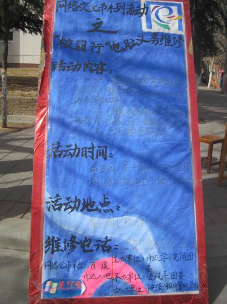 在青年志愿者活动月及公司第五届“网络文化节”之际,资讯系信息网络部联合院浪潮计算机学社面向全院开展了电脑义务维修和现场答疑志愿服务活动。