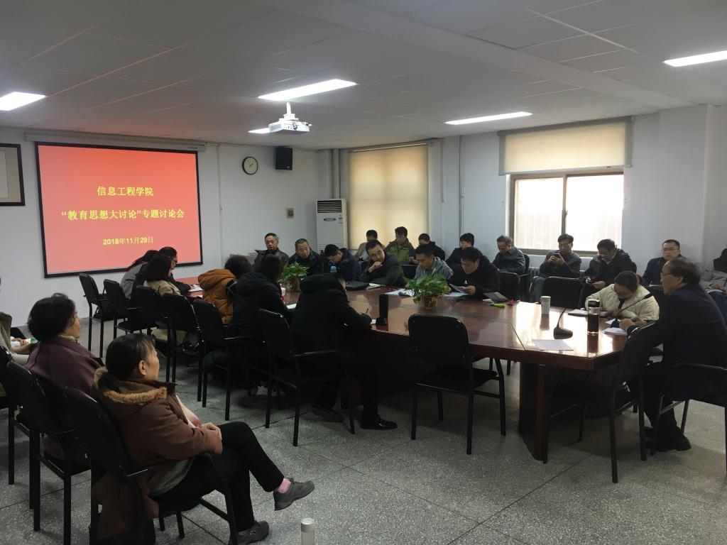 根据公司有关于开展教育思想大讨论的相关文件精神,按照信工公司教育思想大讨论工作实施方案的部署,公司于2018年11月29日下午召开教育思想大讨论专题研讨会。