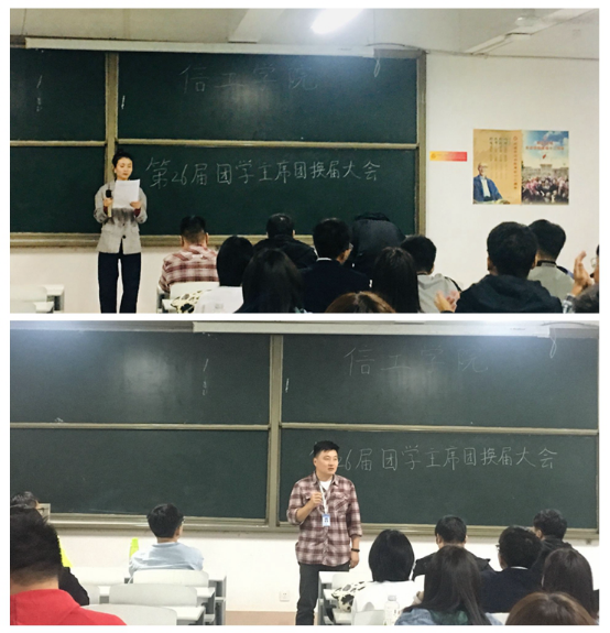 2019年9月19日晚上7点,信工公司第26届团学主席团换届大会在资讯楼315教室隆重举行。信工公司行政秘书兼团委书记王崇老师,团委常务副书记袁奉亚老师,第二十五届团委副书记左金磊、员工会主席魏广州、副主席常向凯出席了本次大会。