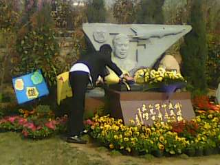 4月 3日下午两点,资讯系06级电子信息工程一班的全体同学在班委的带领下徒步30分钟来到中州文化名人苑为李剑英烈士扫墓。