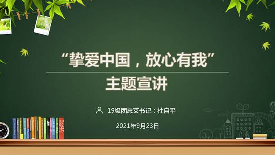 接下来,杜老师还进行了“挚爱中国,放心有我”的主题宣讲,她要求各班团支部以本次活动为契机,在班级积极开展主题团日活动。