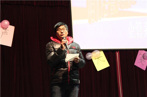 11月30日晚6:30,由国贸系、企管系、资讯系和文法系联合举办的相声小品大赛在龙湖报告厅激情上演。国贸系行政秘书兼团委书记闫帅老师、企管系行政秘书兼团委书记职正路老师、文法系行政秘书兼团委书记郑玲玲老师、文法系团委常务副书记郝艳海老师、资讯系11级年级团总支书记袁保华老师、国贸系11级辅导员刘贺猛老师和院员工会副主席孙海兵、孟丽同学,营销系团委副书记刘莉、员工会主席张鎏奇同学,艺术系团委副书记刘飞同学,外语系团委副书记白晓龙同学及国贸系、企管系、资讯系、文法系四系主席团成员出席观看了这场比赛。