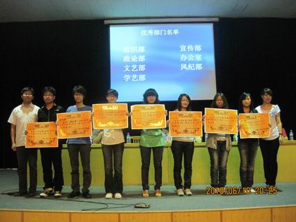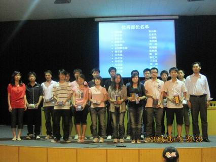 最后,由到会的领导和老师分别对七个先进部门、十四名优秀干事、十七位优秀部长以及十五名“特别奖”获得者颁奖。其中尤其值得一提的是,今年为了感谢因明年毕业班而不得不光荣退役的主席团成员及6位部长几年来对我系团学工作所作出的突出贡献,增设了“特别奖”,并由干事代表为特别奖获得者佩戴红花,充分体现了我系对退役的团学干部的重视和认可。
