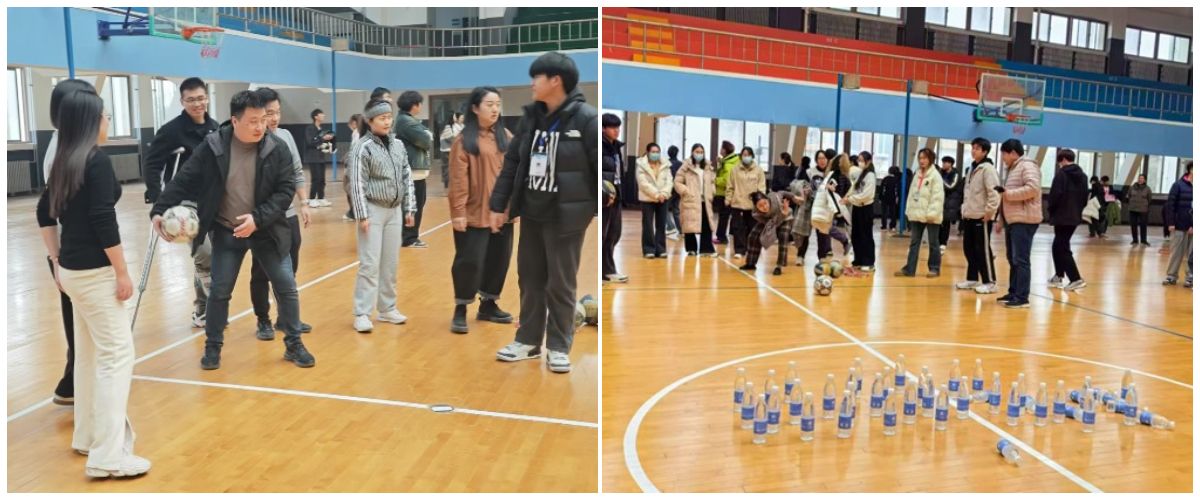 最后的“保龄球”更是别出心裁,老师们瞄准远处摆放的矿泉水瓶奋力掷出手中的排球,欢呼声、惋惜声交织一片。