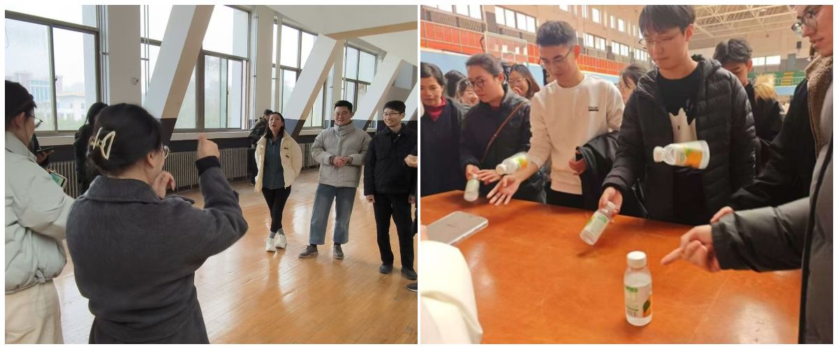 “你比我猜”掀起了欢乐高潮,奇思妙想的比划和脑洞大开的猜测令人捧腹大笑,现场氛围热烈;同时对智慧与耐心双重考验的“立水瓶”游戏,教师们凭借着巧妙的手感与对平衡的敏锐感知,收获着成就后的由衷喜悦;