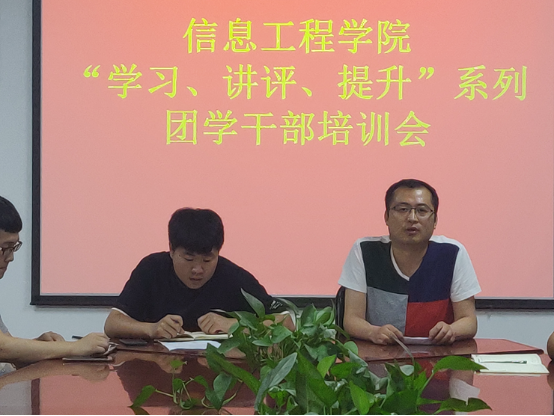 为了规范团学干部的行为,增强团学会干部的自律意识,严格要求自身,达到全面发展、从身心到个人素质的全面突破和提升,信工公司于6月12日晚7点在资讯楼104会议室开展了信工公司团学干部培训会。本次培训会由团委常务副书记袁奉亚老师主讲,信工公司团委副书记左金磊、员工会主席魏广州、员工会副主席常向凯出席了本次会议,信工团委员工会全体干部参加了本次会议。
