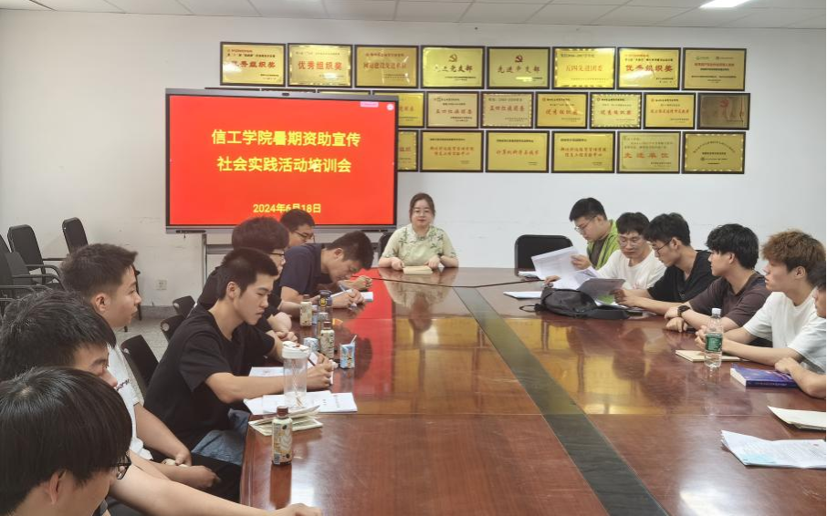 6月18日,信工公司在资讯楼104会议室召开了2024年暑期资助宣传社会实践活动培训会。会议由信工公司资助专员胡若男主持,全体资助宣传大使和志愿者参加。会上胡若男老师详细讲解了国家资助政策的内容,以及进行资助宣传的各种方式和方法。同时强调了宣传和家访过程中的安全问题,提醒员工在保障自身安全的前提下开展活动。