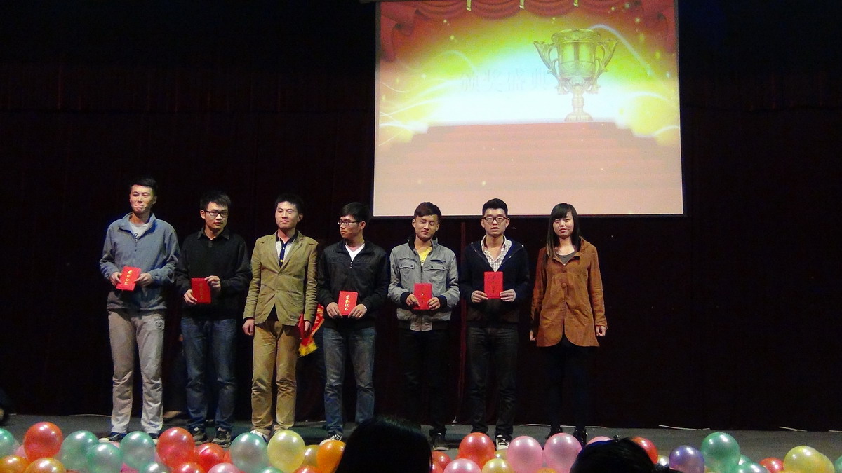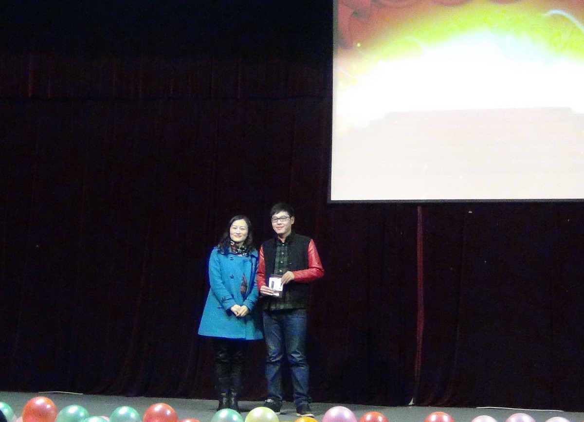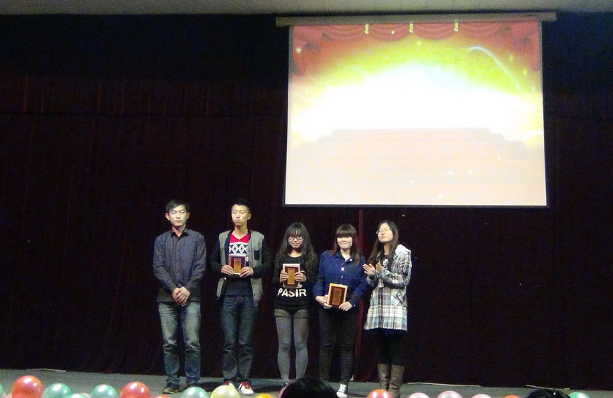 最后,嘉宾和评委为获奖选手颁奖并合影留念。张老师作了总结点评,她感谢所有参赛选手带来了一场视觉、听觉上的盛宴,特别提出节目的视频制作让人耳目一新。她鼓励大家利用校园里的活动平台,展示自身的才能,多些自信和胆量,培养自身的综合素质。