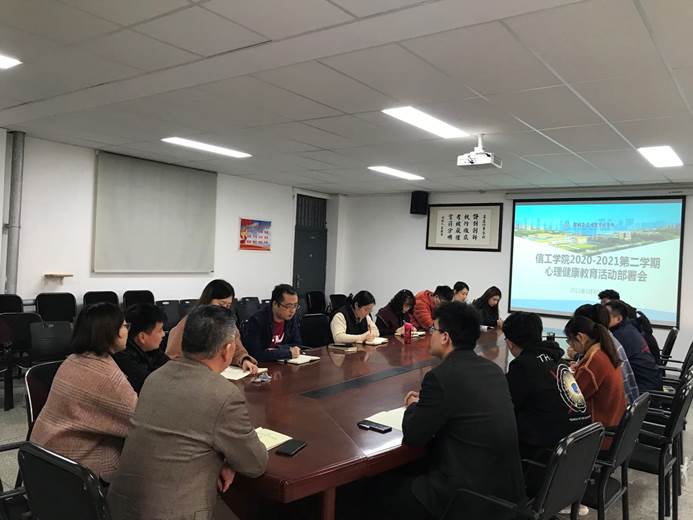 3月30日,信工公司于资讯楼104会议室开展了信工公司新学期心理健康教育工作部署会。参加会议的有信工公司白鑫经理、党总支张现水书记、行政秘书王崇老师和全体辅导员老师。