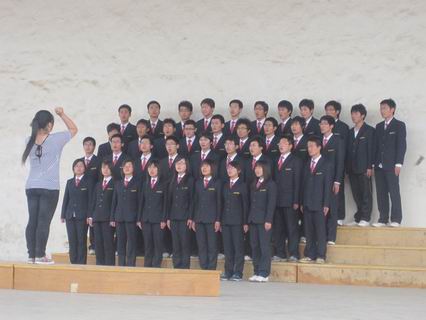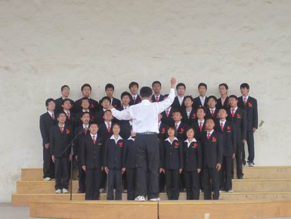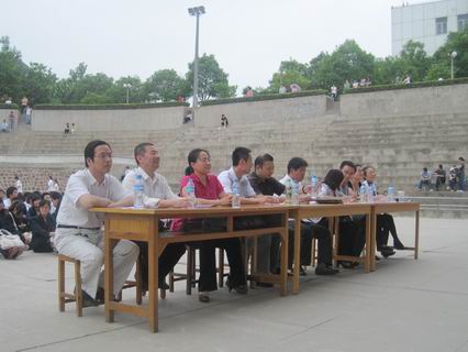 如火的骄阳,不仅没有吓退同学们的热情,反而更加激发了同学们的激情,我系除毕业班之外的千余名同学在工作人员的引导下,有序地在指定的位置等待着比赛的开始,为了能在比赛中有更好的表现,有的同学还不时的反复试唱着,指挥和同学们进行着最后的沟通,以求配合的更加和谐。