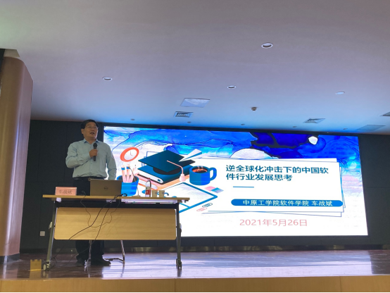 一个半小时的报告图文并貌、内容详实,车教授结合软件行业的发展和河南省的发展,为大家介绍了逆全球化对于软件行业的影响。车教授独特新颖的观点,不仅开阔了参加会议的信工学子的思路,也加深了同学们未来对于自己将要从事的软件行业的思考和认识,让同学们更加明确接下来自己的努力方向。