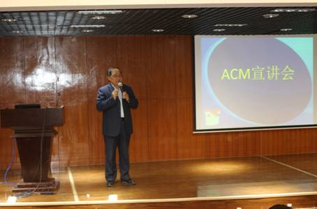 首先,李主任首先对这次宣讲会致词。他表示系里非常重视学科竞赛工作,一直以来,对ACM的竞赛活动的开展都给予大力的支持。他鼓励同学们借此契机,利用好这个协会平台,在指导老师的带领下,努力钻研,刻苦学习,共同提高,在今后的竞赛中取得成绩,同时他对竞赛获奖人员进行了表彰和鼓励。