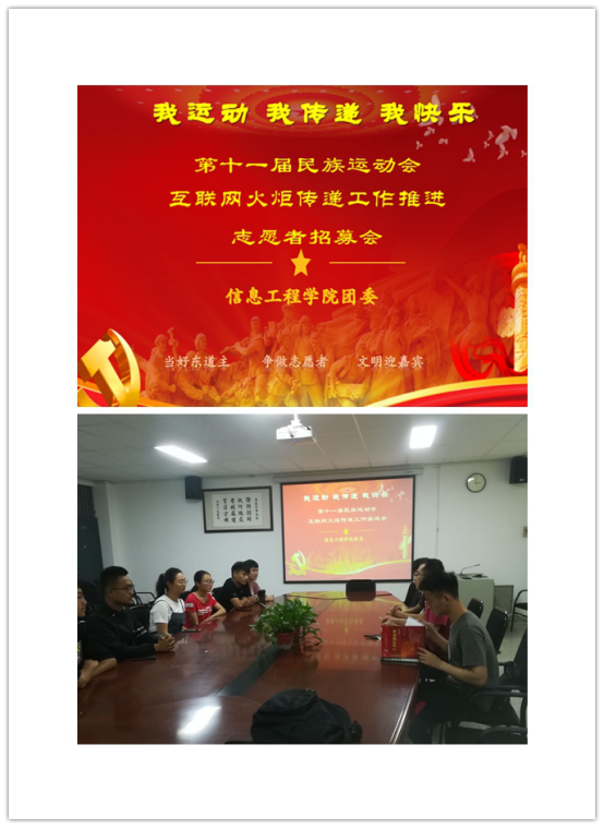 5月28日下午16点,beat365召开互联网火炬传递工作推进会,信工公司团委组织部,体育部负责人参加了本次工作推进会。会上,信工公司团委副书记袁奉亚老师强调:河南省人民政府承办的第十一届全国少数民族运动会将于2019年9月在郑州举行。这是省会郑州又迎来一项全国性重要赛事。也是全国少数民族运动会第一次在中部省份举办,运动会设有17个竞赛和表演项目,会期14天,其中比赛时间9天,预计规模1万人。希望我们广大团员出一份力,尽一份责任,以互联网火炬为契机传递青年团员声音,青年团员力量,为出彩郑州做出自己的贡献。