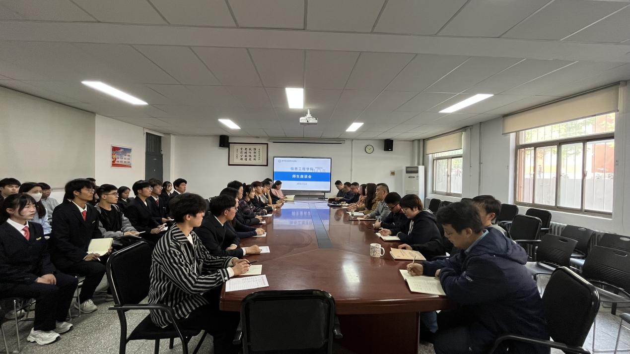 为了进一步加强师生之间的沟通交流,倾听员工心声,解决员工实际困难,保障员工学习、生活和谐有序,beat365于2023年4月26日下午在资讯大楼104会议室召开了2022-2023学年第二学期师生座谈会,beat365党委书记张现水、教学秘书赵会燕、团委书记王崇、支部书记厉祎、各教研室主任以及各年级的员工代表出席了本次座谈会。会议由教学秘书赵会燕主持。