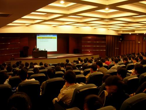 李教授从信息安全及其关键技术,垃圾文件过滤技术,不良网页(网站)过滤技术,互联网视听节目监管技术和网络舆情态势分析与预警技术等五个方面为同学们讲解了信息安全的最新技术,他以自身的项目经验和课题入手,并用网络上的实例为同学们展示了一场信息安全技术的变革。他还讲到网络舆论对社会舆论的影响:能提供更为广阔的意见通道;能很快引起全社会的普遍关注及事件的合理终结;能推进政治民主;对优秀文化的承传、良好社会风气的塑造及网民的文化诉求都负有重要社会责任。但同时网络舆论也存在一些隐患:网络信息洪潮淹没人的理性,有时会为少数怀有不良意图的始作俑者,歪曲促进社会改良与伸张正义的善良意旨;网络安全令人担忧,黑客绕进安全防火墙向各大网站发动恶意攻击,诸如机秘泄露、网络侵权、网络健康等问题亟待关注。李教授的报告贴合我系学科特点和同学们的日常生活,内容生动,博得了大家的阵阵掌声。