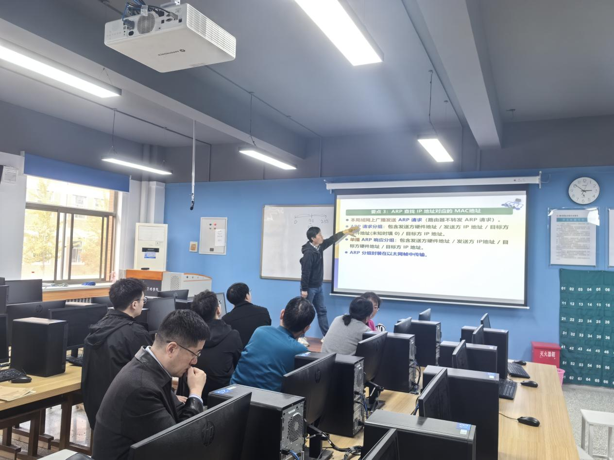 最后,宁跃飞老师讲解了计算机网络中的地址解析协议ARP的相关内容。宁老师以其严谨的教学态度和深入浅出的讲解方式,让教师们对ARP协议的工作原理和应用场景有了更全面的认识。