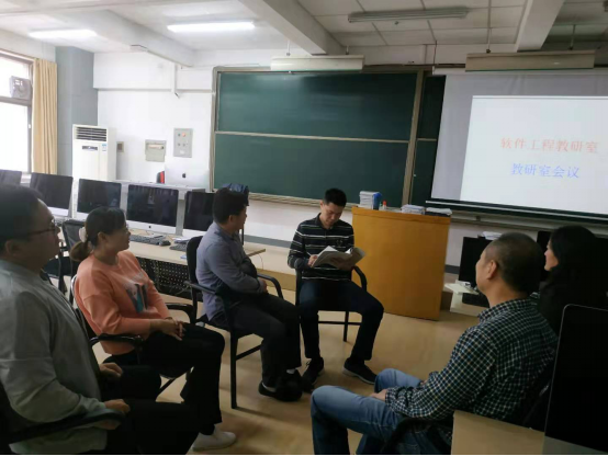 2019年10月10日星期四下午,信工公司软件工程教研室全体教师于资讯楼112移动开发实验室召开教研室会议,会议由教研室主任程杰主持。会上主要讨论了软件工程专业一些课程要积极开展混合式教学方式,充分利用线上与线下教学的资源较好地调动员工学习的积极性。本学期以面向对象程序设计开发这门课为试点,进行积极探讨和实验。目前采取的措施主要是除常规教学外,线上每章节开设有专题讨论、线上作业、线上教学视频、线上程序源代码分享等活动。对于下一步如何更好地运用线上教学新模式进行了积极的讨论。