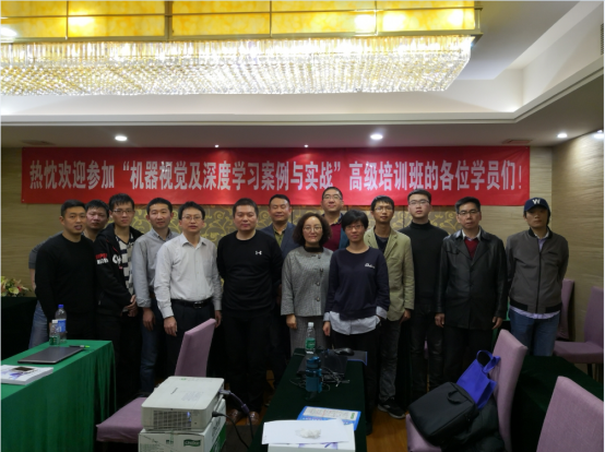 本次培训时间共5天,培训内容以当前智能机器人核心技术之一——机器视觉为主题,深入讲解机器视觉的多种关键技术,并配以丰富的实践案例分析。来自中科院自动化所模式识别国家重点实验室的申研究员讲授智能机器人三维环境重建与感知技术,并教授三维重建的开源软件和商业软件的使用,下图是与申研究员的合影。